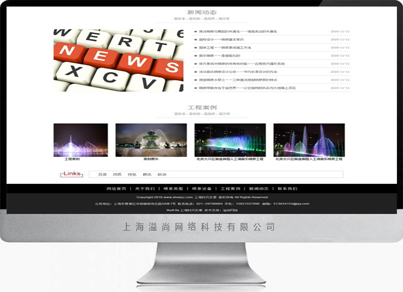 網站描述:首頁采用企業(yè)型網站排版方式,以簡潔化排版方式,突顯公司實力,以實際案例展示,表明公司業(yè)務范圍。首頁包含版塊有關于我們版塊,產品中心版塊,噴泉知識版塊,噴泉設備版塊,新聞動態(tài)版塊,工程案例版塊。