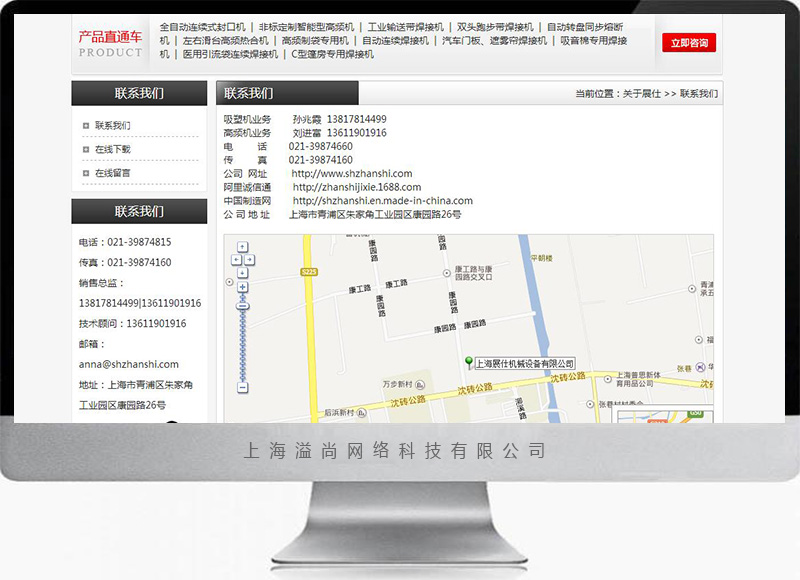 青浦企業網站托管展仕機械設備案例/